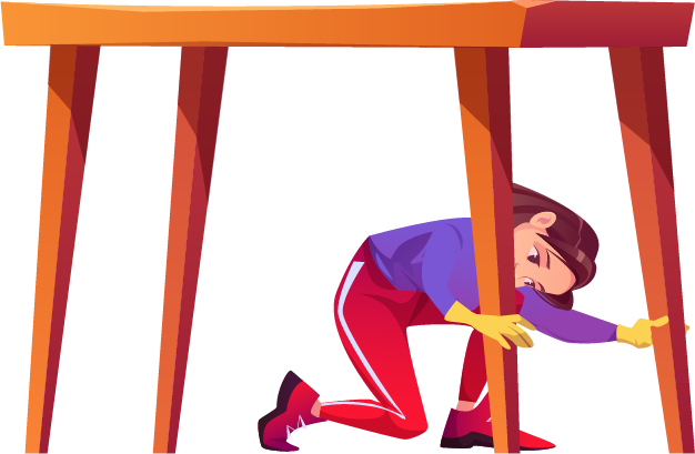 假如附近有桌子,盡可能躲在桌下(請避免玻璃桌面,其他桌子都可以),抓穩桌腳,保護好自己。