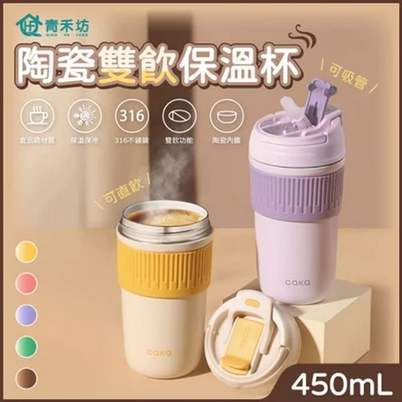 【CAKA】青禾坊316陶瓷內膽雙飲保冷保溫杯450ml